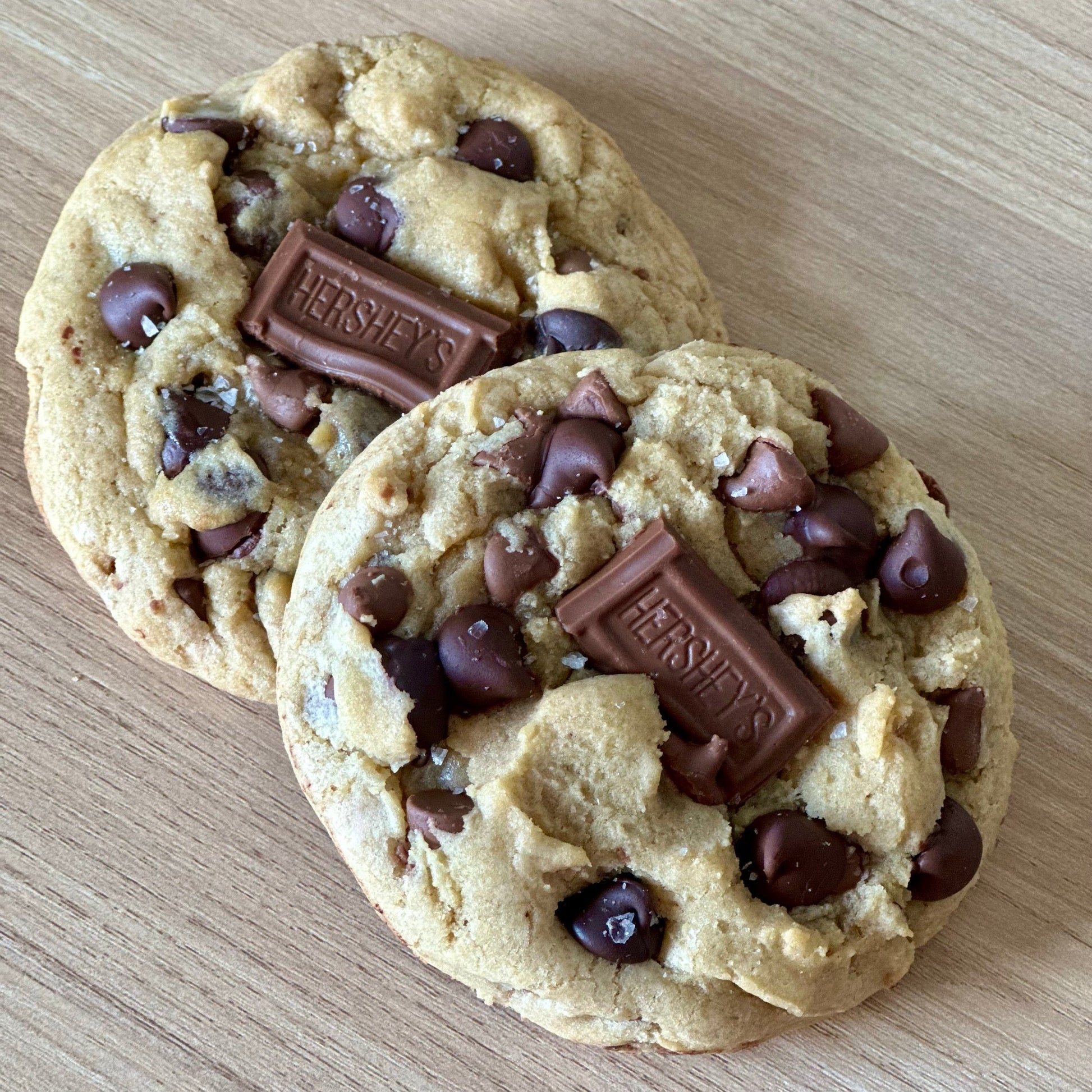 5 oz. cookie. Creamy Hershey’s milk chocolate and bold dark chocolate. Soft, chewy, and packed with double CHOCOLATEY goodness in every bite.